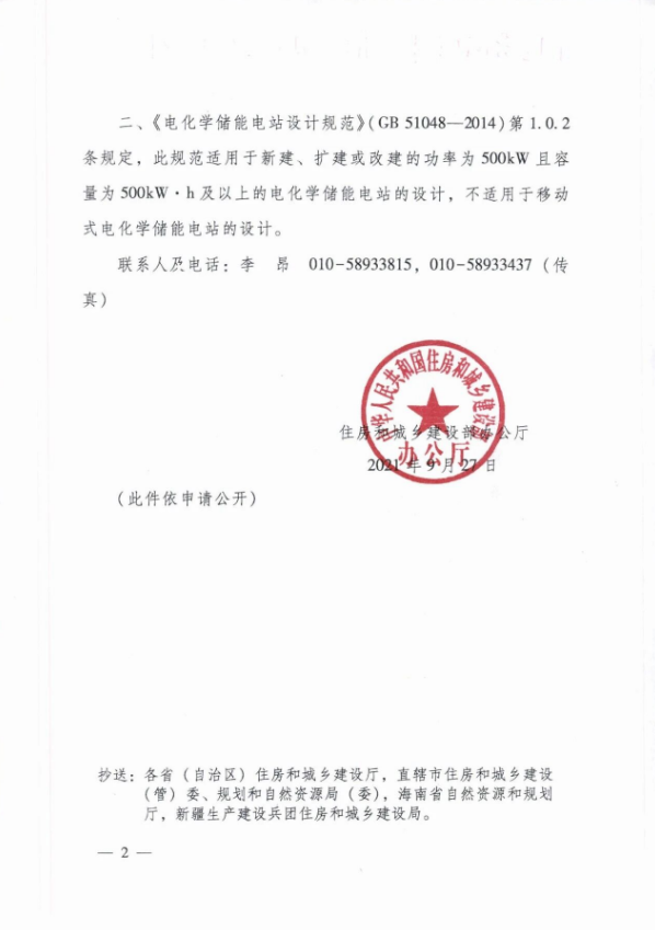 根據(jù)《住房和城鄉(xiāng)建設(shè)部辦公廳關(guān)于儲能電站消防設(shè)計(jì)審查驗(yàn)收有關(guān)事項(xiàng)的函》(建辦科函[2021]403號)文件精神:
