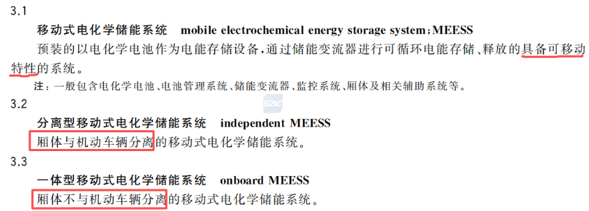 ?。?)《移動式電化學(xué)儲能系統(tǒng)技術(shù)規(guī)范》GB∕T 36545-2023第3.1-3.3條:移動式電化學(xué)儲能系統(tǒng)是具備可移動性的系統(tǒng),分為一體型移動式電化學(xué)儲能電站和分離型移動式電化學(xué)儲能系統(tǒng)。